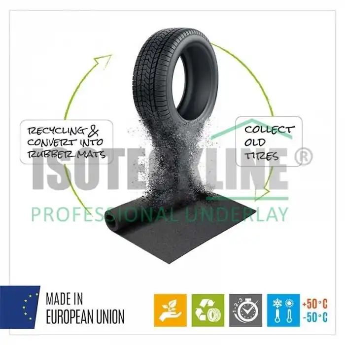Materialul din care este realizat covorasul ofera o aderenta excelenta, prevenind alunecarile, si o buna absorbtie a socurilor, reducand impactul si zgomotul.
