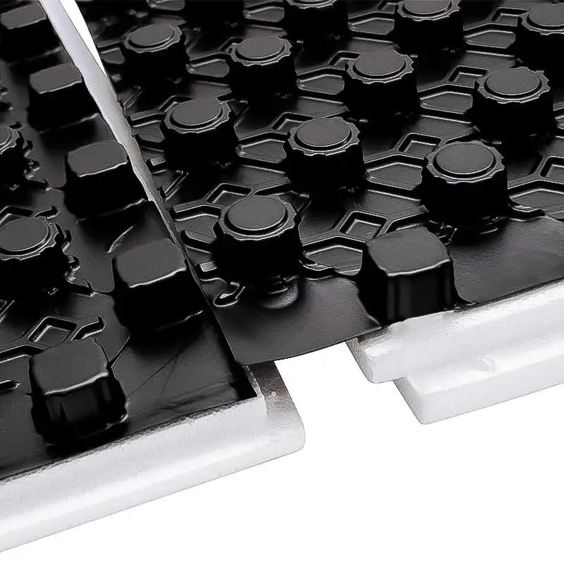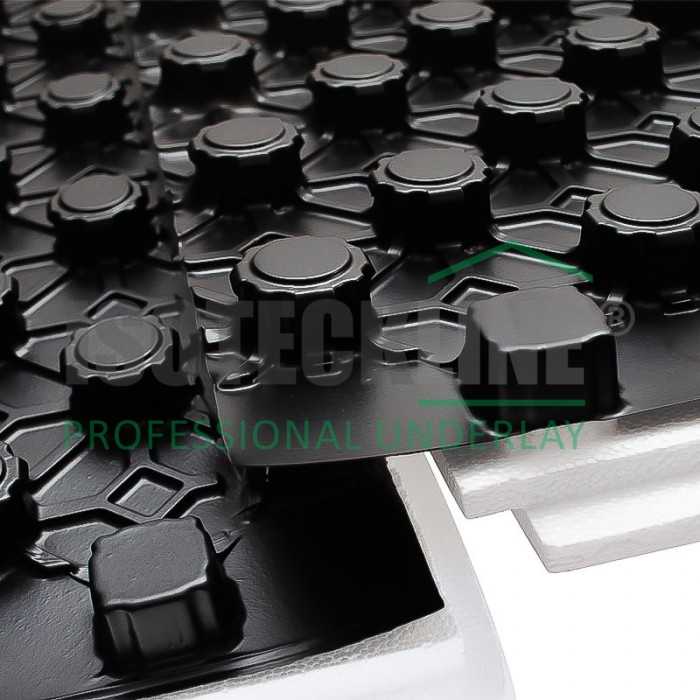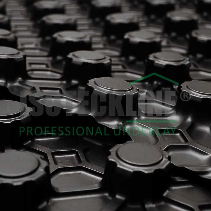 Placa din polistiren cu nuturi are o folie hidroizolanta de culoare negru, atasata pe suprafata stratului de EPS si asigura o distributie perfecta a caldurii pe intreaga pardoseala, pentru un confort termic excelent.