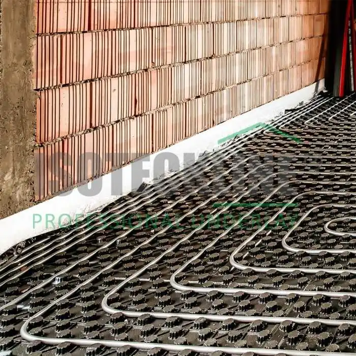 Pentru instalarea sistemului de incalzire prin pardoseala este necesar sa urmarim etapele necesare. Dupa aplicarea unei sape brute, se aseaza placa cu nuturi, care are rolul de a fixa tevile in mod uniform pe toata suprafata pardoselii. Tevile pot fi montate usor printre nuturile special amplasate, realizandu-se o distributie uniforma.