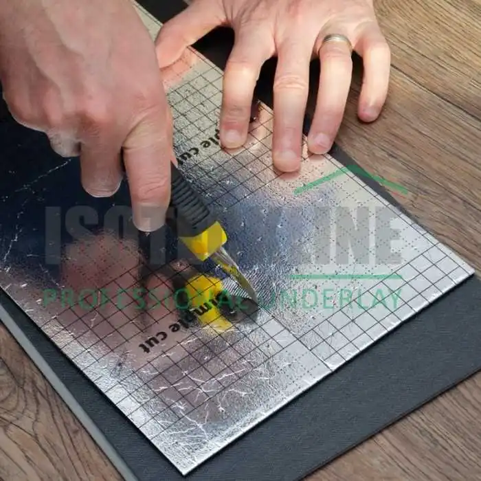 Polistirenul extrudat are avantajul de a prelua denivelarile de la nivelul sapei de pana la 3 mm. Placile sunt prevazute cu banda dublu adeziva pe lateral pentru etansare, iar caroiajul indica zona de montaj a tevilor pentru incalzirea in pardoseala.