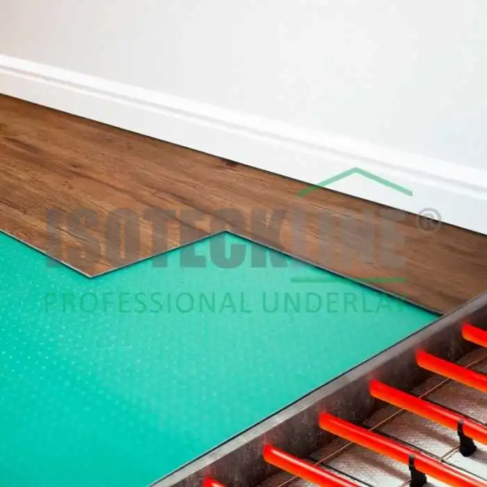 Placa din polistiren extrudat cu perforatii este ideala pentru utilizarea in structurile de pardoseli cu elemente flotante de parchet laminat sau parchet din lemn, in special in cazul elementelor de parchet laminat asamblate prin sistemul mecanic "Click". Aceste placi sunt ideale ca element izolator pentru incalzirea in pardoseala. Mai mult, placile atenueaza zgomotul la impact si reduc nivelul de zgomot generat in camera in timpul deplasarii utilizatorului pe pardoseala.